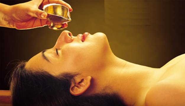 Nasya According to Ayurveda, Nasyam is the most important treatment for any disease or discomfort in the head region. Nostrils are considered as the doorway to the brain. Nasya begins with giving therapeutic face and shoulder massage with medicated oils followed by steam. Then medicated oil, powder or herbal juices are administered through the nose in particular doses as per requirement. This process detoxifies by eliminating the vitiated doshas accumulated in the nasopharynx, sinus cavities and throat. Ayurveda considers this therapy to be very effective for treating several psychological disorders, congestion, migraine, neurological disorders, premature aging and anorexia nervosa.